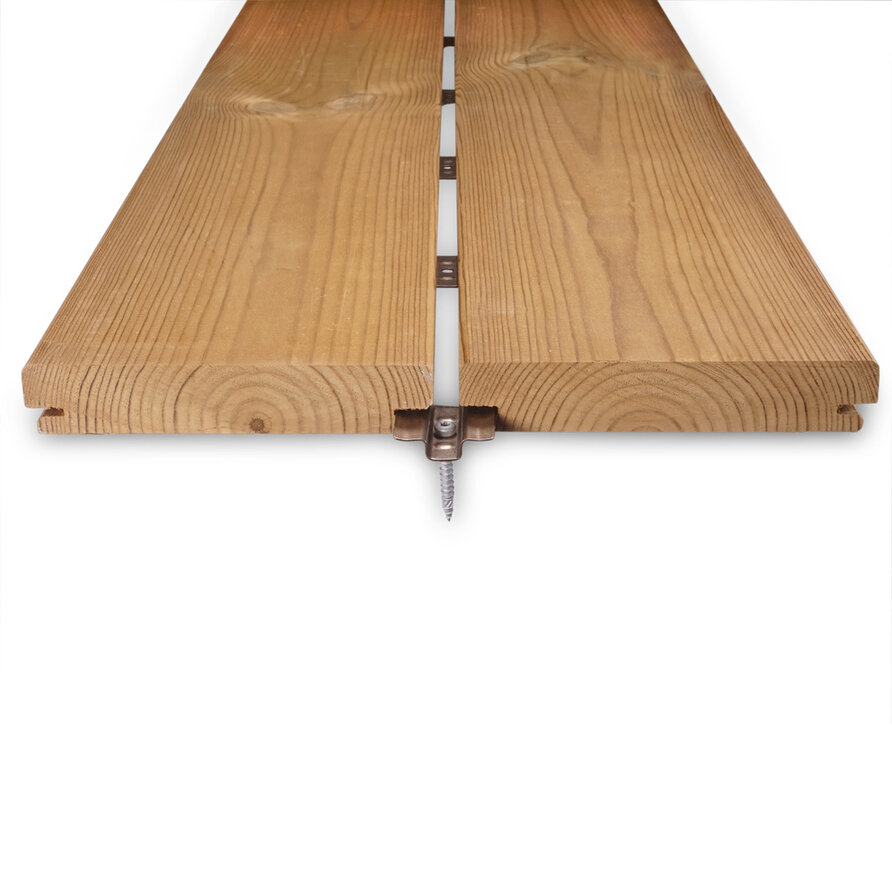 LET OP: Deze clips zijn speciaal ontworpen om planken bij de kopse naden te bevestigen, waarbij 3 of 4 planken worden samengevoegd. Als u echter slechts twee planken aan elkaar wilt bevestigen, kunt u de standaard B-fix One clip gebruiken.