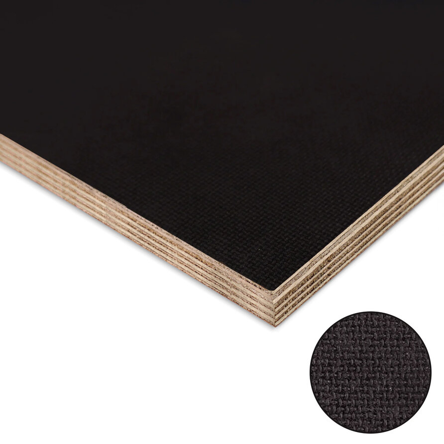 Proefstuk bestellenBetonplex hardhout antislip - zwart bruin - 18 mm dik is een gunstig geprijsde zwartbruine betonplex plaat voor buiten met watervaste (WBP) verlijming. Deze hardhouten betontriplex plaat bestaat uit 9 lagen eucalyptus fineer en is aan beide zijden glad afgewerkt met een harde fenolhars coating (120 gr/m3). De primaire zijde heeft een geweven motief, de andere zijde is glad afgewerkt. De laagopbouw is vaak iets minder strak dan bij andere multiplex soorten.