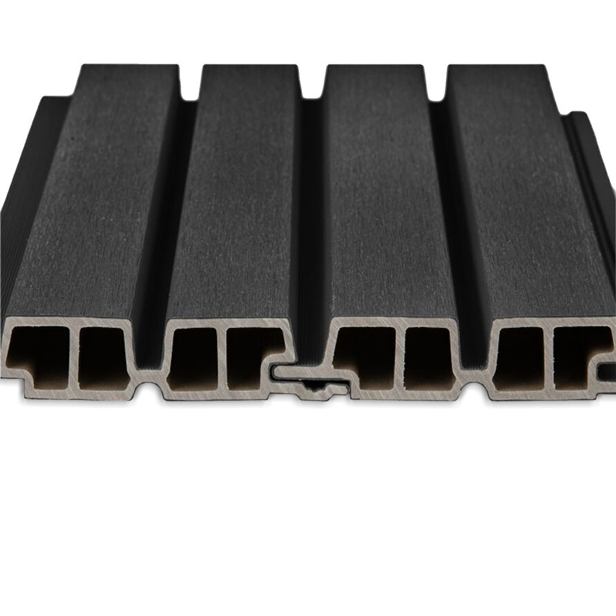 Een (hol) composiet dubbel blokprofiel met zwart ebben look - 33x140 mm is een modern rabatdeel van stabiel en duurzaam houtcomposiet. Houtcomposiet is kleurvast, onderhoudsarm en heeft vergeleken met hout een zeer lange levensduur (+25 jaar). Lees meer