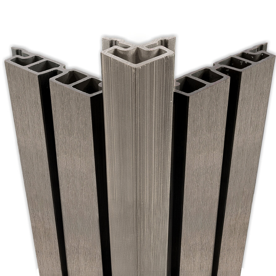 . Houtcomposiet is een mix van houtvezels met hoogwaardige kunststoffen en is kleurvast, onderhoudsarm en heeft vergeleken met hout een zeer lange levensduur (+25 jaar). Dit speciale composiet hoek afwerkprofiel heeft een lichtgrijze kleur en past bij onze vergrijsd hout look composiet triple blok en dubbel blok profielen. Altijd de juiste composiet profielen voor uw nieuwe buitenproject bij HOUTvakman.be!