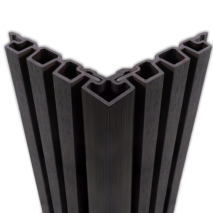 Het composiet hoekprofiel - zwart kleur - 67x67 mm is speciaal geschikt voor onze composiet triple / dubbel blokprofielen. Het randprofiel heeft een licht geribbeld oppervlak en sluit perfect aan op twee dubbel of triple blokprofielen. Onze hoekprofielen in bijpassende kleur zorgen voor een nette en strakke afwerking van uw gevel of schutting. Ze beschermen en verbergen de randen van blokprofielen die in een buitenhoek van 90 graden samenkomen. Perfect voor een mooi en compleet eindresultaat!