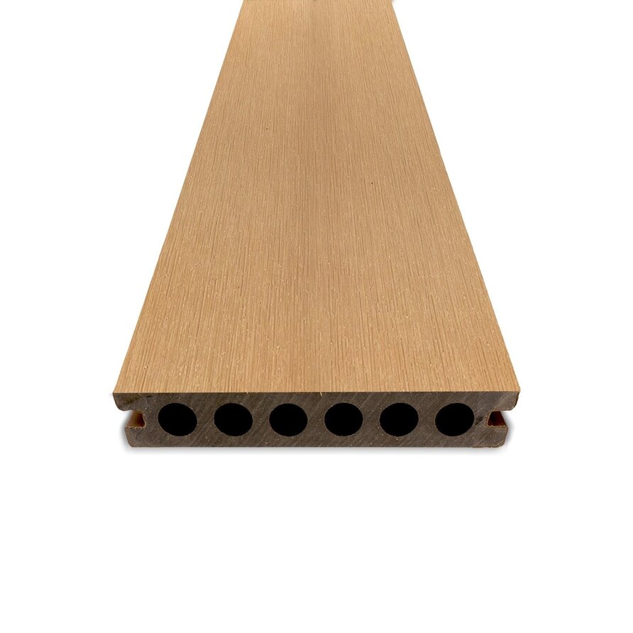 Composiet terrasplank - hol (semi massief) - cedar uitstraling - 23x138 mm - 1 zijde geschaafd / 1 zijde geborsteld (optiek) - vlonderplank met blinde bevestiging - houtcomposiet