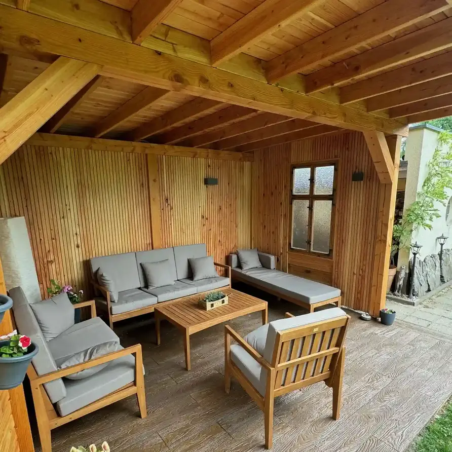 Wij leveren tuinhout, dat nog bewerkt & verwerkt zal worden. Douglas bevat (kleine) noesten, incidenteel ook los / uitvallend, (droog)scheuren, mogelijk wat hars aan het oppervlak en mogelijk wat onaangetast spint en ingesloten hart. Het douglashout heeft ruwe uiteinden (ingekort met kettingzaag) en een overlengte van 1 - 10 cm. Geschaafd hout is - t.o.v. ruw / fijnbezaagd hout - glad & vrij vormstabiel, houd wel rekening met geringe maatafwijkingen door werking van het hout. Het betreft KD 18-20% hout, oftewel kunstmatig teruggedroogd hout met een vochtpercentage van 18-20%. Dit hout is - t.o.v. AD hout - vrij stabiel, echter dient u altijd rekening te houden met werking van het hout.