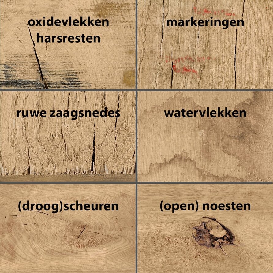 Wij leveren tuinhout, dat nog bewerkt & verwerkt zal worden. Rustiek eikenhout werkt relatief veel, is vrij vlekgevoelig & bevat noesten, scheuren en mogelijk ook wat onaangetast spint & ingesloten hart. Het eiken hout heeft ruwe uiteinden (ingekort met kettingzaag) en een overlengte van 1 - 10 cm. Fijnbezaagd (ruw) tuinhout bevat houtvezels & diverse oneffenheden en is nooit haaks, vormvast & maatvast. Houd tevens rekening met maatafwijkingen door werking van het hout. Voorkom contact met metaal - vanwege de looistoffen - en gebruik altijd bevestigingsmateriaal van RVS. Het betreft AD hout, oftewel (licht) aangedroogd 'vers' hout, dat (door droging) nog actief zal werken (krom trekken & mogelijk scheuren). Het hout wordt 'vers' in de juiste kopmaat gezaagd, door droging kan deze wat kleiner uitvallen. Eikenhout voor buiten is dan ook echt voor de liefhebber!