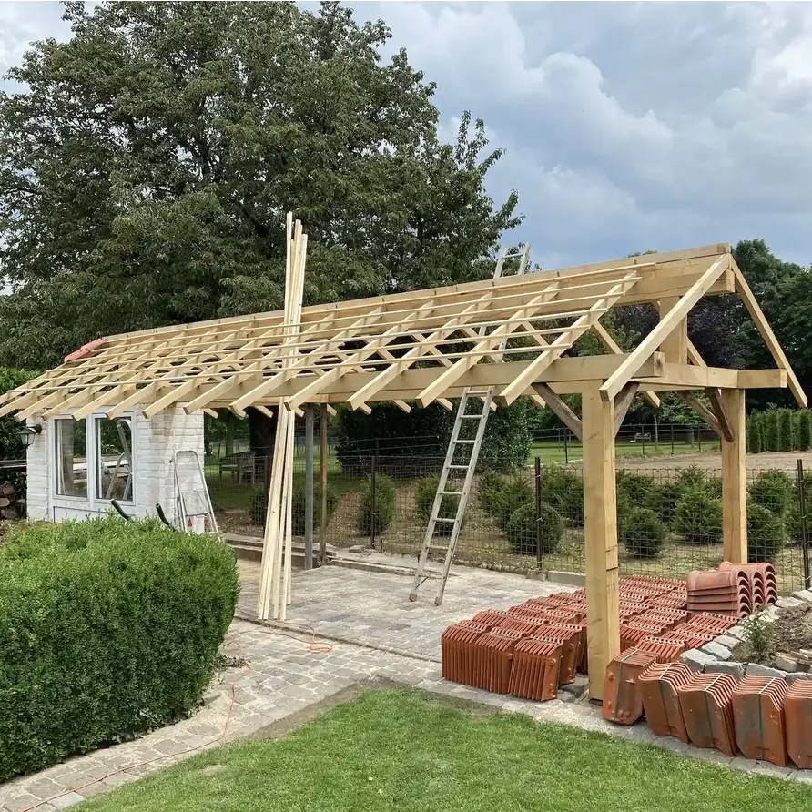 Een eerlijk verhaal - ruwe eiken AD balken voor buiten.