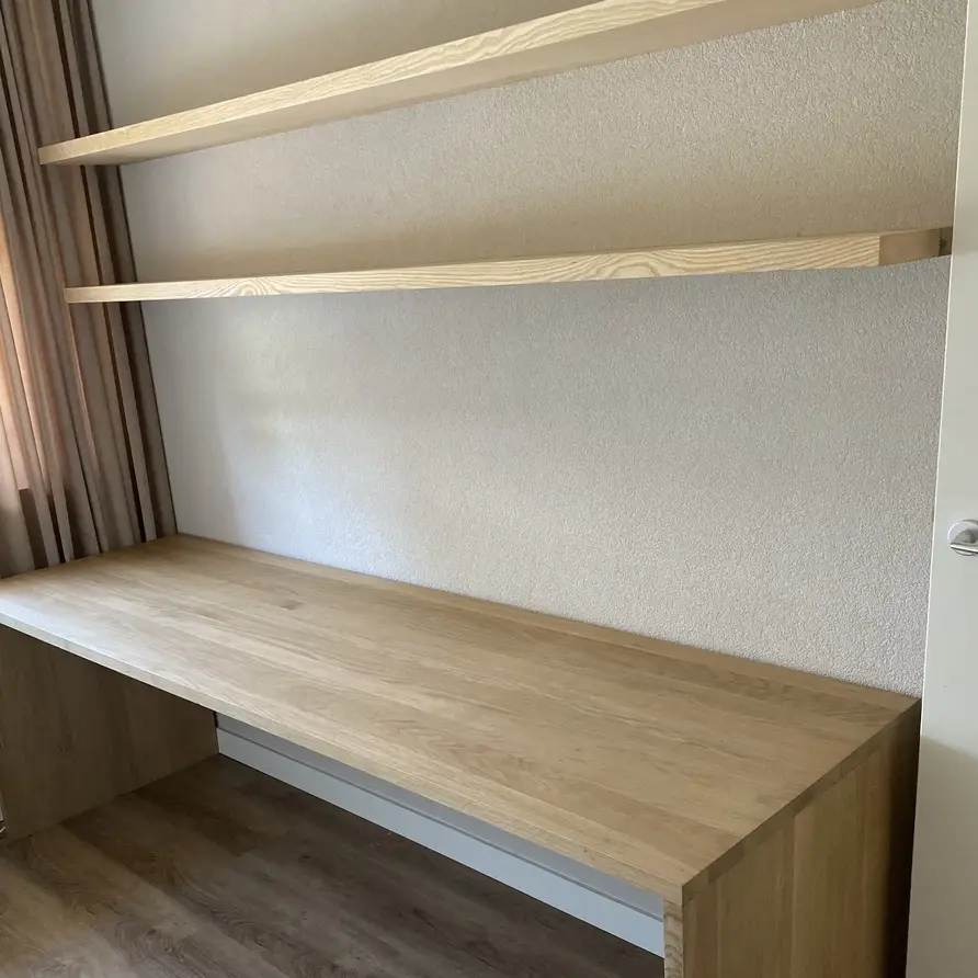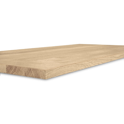 Eiken blad (voor binnen) op maat. Massief eikenhout foutvrij KD 8-12% - 2 cm dik - Eiken paneel / blad ambachtelijk verlijmd - met doorlopende lamellen - Optioneel: behandeld (olie/lak) / stalen profielen / tafelblad kanten / geborsteld. Lees meer