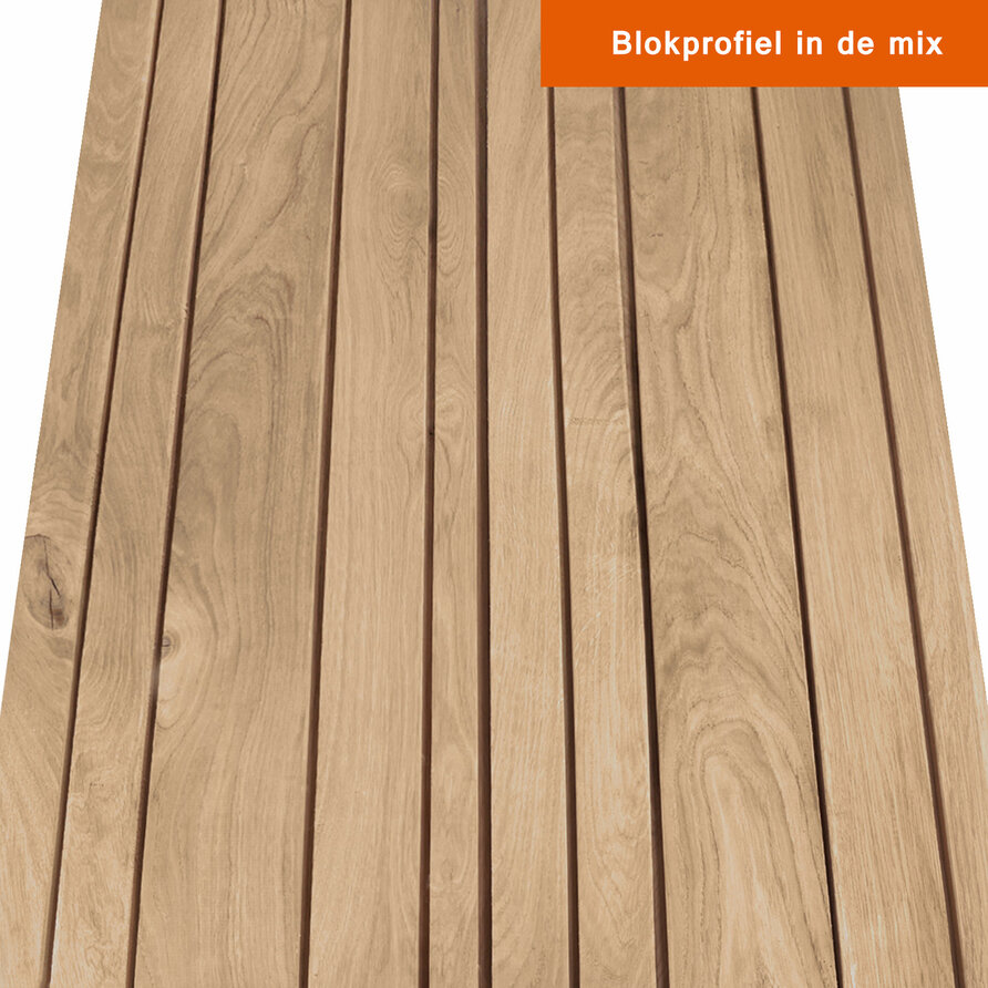 Een eiken enkel blokprofiel - 21x125 mm (werkende breedte) - geschaafd is een stijlvol rabat deel / plank met een moderne look, van luxueus eikenhout met een landelijk uitstraling. U bestelt een blokprofiel enkel van rustiek Europees eikenhout (AD 20-25%) eenvoudig & voordelig online bij HOUTvakman.be, in diverse lengtes uiteraard. Het enkel blokprofiel is een stijlvol rabatdeel geschikt voor een sfeervolle houten gevelbekleding met moderne look. Ideaal voor buiten wanden & gevels, maar ook voor schuttingen & poorten. TIP: Verwerk het rabat "in de mix" met onze andere (dubbel & triple) blokprofiel rabat planken, voor een uniek (barcode) lijnenspel. Met Europees rustiek eiken kiest u bewust voor een luxe & duurzame tuinhout soort met een landelijk accent. Behandelen is mogelijk, echter wordt eikenhout voor buiten veelal onbehandeld toegepast, waarbij het mooi vergrijst. Altijd een eiken enkel blokprofiel voor uw buitenproject bij HOUTvakman.be!