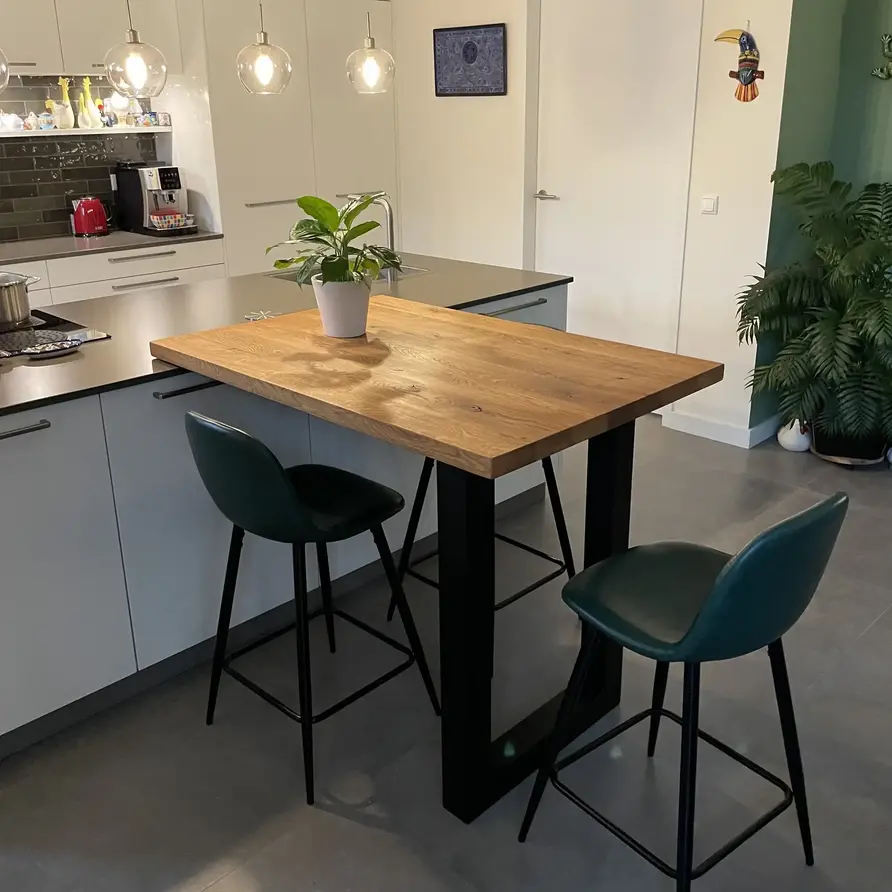 Eiken horeca tafelblad (voor binnen) - in diverse (kleinere) vaste afmetingen - massief eikenhout - rustiek KD 8-12% - 4 cm dik (1-laags) - ambachtelijk verlijmd eikenhouten tafelblad - met doorlopende lamellen - optioneel: noesten gevuld en/of behandeld Lees meer