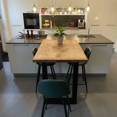 U kunt uw rustiek eiken tafelblad vervolgens naar wens configureren. Hierbij kunt u kiezen voor de opties noesten gevuld en/of een oppervlakte behandeling (met olie of lak) in diverse kleurtinten.