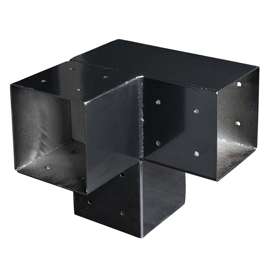 Hoekverbinding hout - hoekverbinder 3 balken - 120x120 of 150x150 mm - paalverbinder zwart gecoat