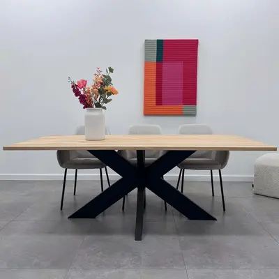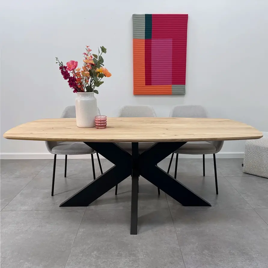 GESCHIKT VOOR: Dit onderstel is geschikt voor een tafel(blad) met een lengte van 200 cm tot circa 240 cm lang & een breedte van circa 100 - 110 cm. Daarnaast adviseren wij een minimale tafelblad dikte van 3-4 cm, zeker in het geval van de wat grotere tafels. De kans op "kromtrekken' is bij een (eiken) tafelblad van 2-3 cm relatief groot, ook al is uw tafelblad voorzien van staalprofielen t.b.v. stabilisatie.