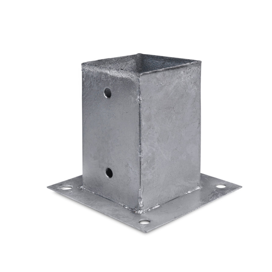 Paalhouder met plaat - paalvoet - paaldrager - gegalvaniseerd staal - verschillende maten. Deze paalhouders van metaal zijn ideaal voor het plaatsen van palen voor diverse tuinconstructies zoals omheiningen, pergola's, speeltoestellen en andere houtprojecten un uw tuin.
