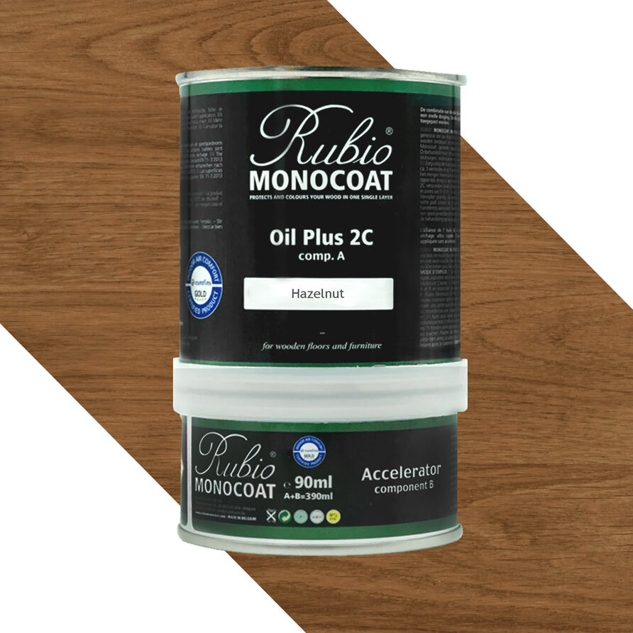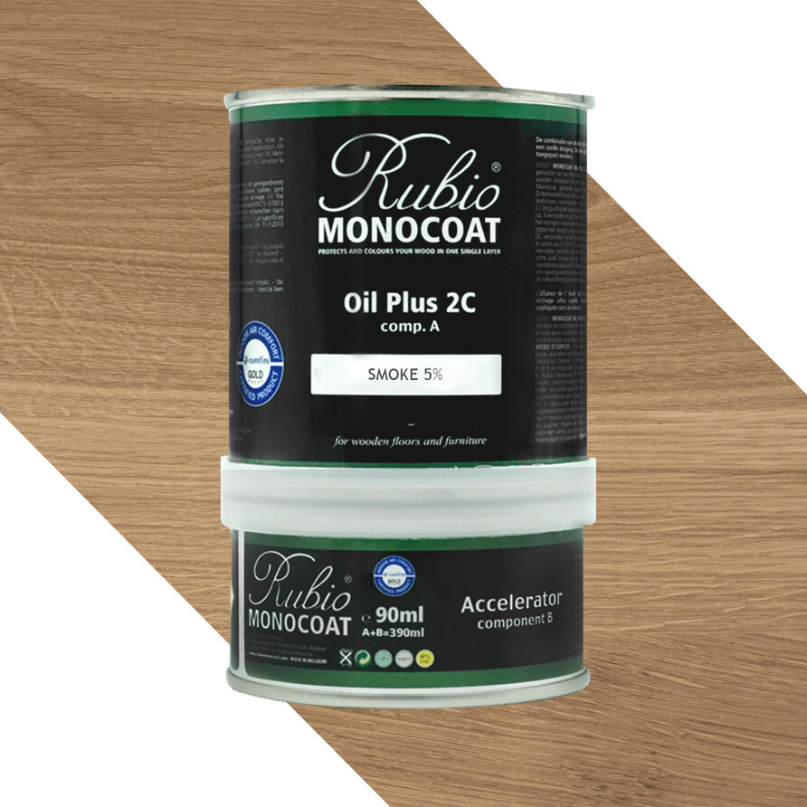 Rubio Monocoat olie - 0,39 liter (12-19 m²) - beschikbaar in verschillende kleurtinten - 2-componenten olie (A+B) voor binnengebruik. Als u op zoek bent naar een hoogwaardige 2-componenten olie in een bijzondere kleurtint voor uw eiken tafelblad, dan is Rubio Monocoat olie +2C (2 componenten, A+B) een ideaal product. Deze olie is verkrijgbaar in diverse kleuren en biedt een transparante afwerking. Het is speciaal ontworpen voor het behandelen van onbehandeld hout, waaronder eiken.