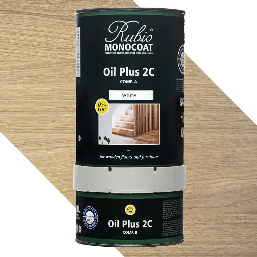 Rubio Monocoat olie - 1,3 liter (12ca. 52 m²) - beschikbaar in verschillende kleurtinten - 2-componenten olie (A+B) voor binnengebruik. Als u op zoek bent naar een hoogwaardige 2-componenten olie in een bijzondere kleurtint voor uw eiken tafelblad, dan is Rubio Monocoat olie +2C (2 componenten, A+B) een ideaal product. Deze olie is verkrijgbaar in diverse kleuren en biedt een transparante afwerking. Het is speciaal ontworpen voor het behandelen van onbehandeld hout, waaronder eiken.