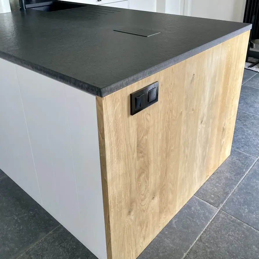 Onze panelen zijn opgebouwd uit doorlopende lamellen, hebben scherpe randen & hoeken en worden finish geschuurd uitgeleverd. Een timmerpaneel betreft een halffabrikaat, er kunnen wat oneffenheden voorkomen. Rustiek eikenhout is vrij vlekgevoelig en bevat noesten, scheuren en mogelijk ook een beperkte hoeveelheid spint. De doorlopende lamellen hebben een breedte van 6-12 cm. Het betreft 'droog' KD 8-12% hout - oftewel kunstmatig gedroogd hout met een vochtpercentage van 8-12% - geschikt voor het binnenwerk van tuinobjecten & toepassingen binnenshuis.
