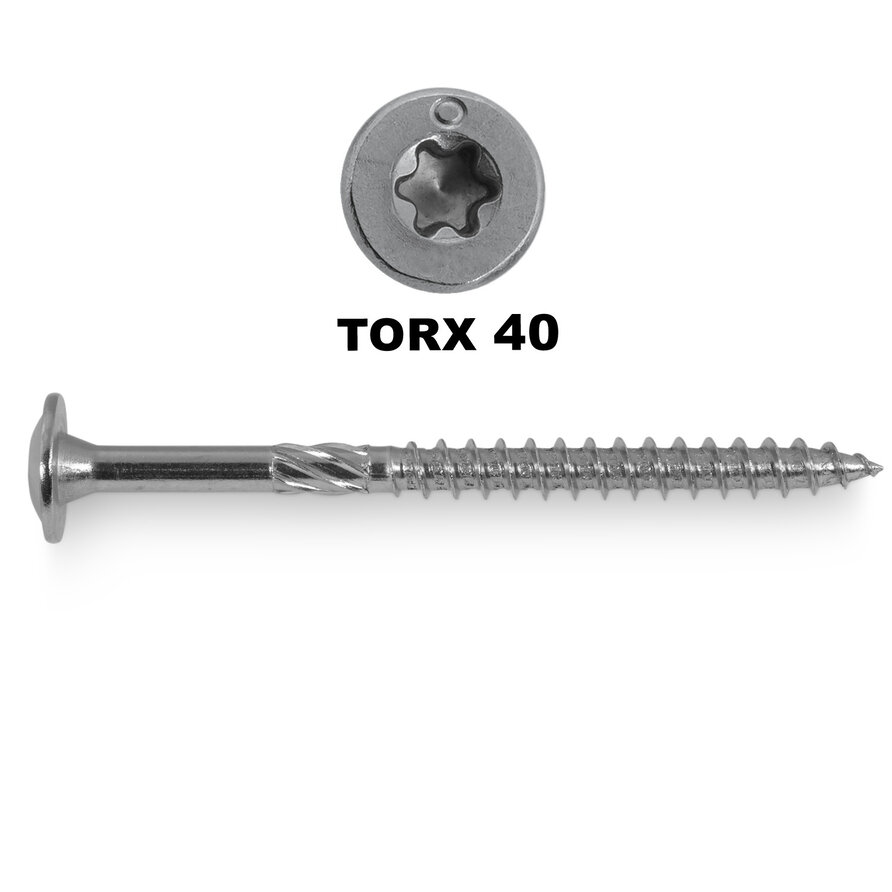 Tellerkopschroeven inox - schotelkopschroef - 8 mm - RVS gehard - Torx TX-40 - grove spoed - deeldraad - flenskop - inclusief bitje - met boorpunt en freesribben - 50 stuks. Inox tellerkop schroeven vervaardigd uit gehard roestvast staal (RVS) met grove spoed en deeldraad. Deze schotelkopschroeven zijn uitgerust met een speciale boorpunt en turbodraad, waardoor deze vijzen wel 2,5 keer sneller in het hout boren dan bij een standaard schroef. Hoewel het een zelfborende schroef is, raden we toch aan om bij deze schroeven voor te boren. Bovendien zijn deze tellerkopschroeven van uitstekende kwaliteit en hebben ze een hoge sterkte, waardoor ze ideaal zijn voor het bouwen van grote houtconstructies die zware belasting kunnen dragen.
