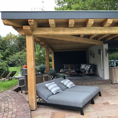 Een eerlijk verhaal - verouderde eiken AD balken voor buiten.