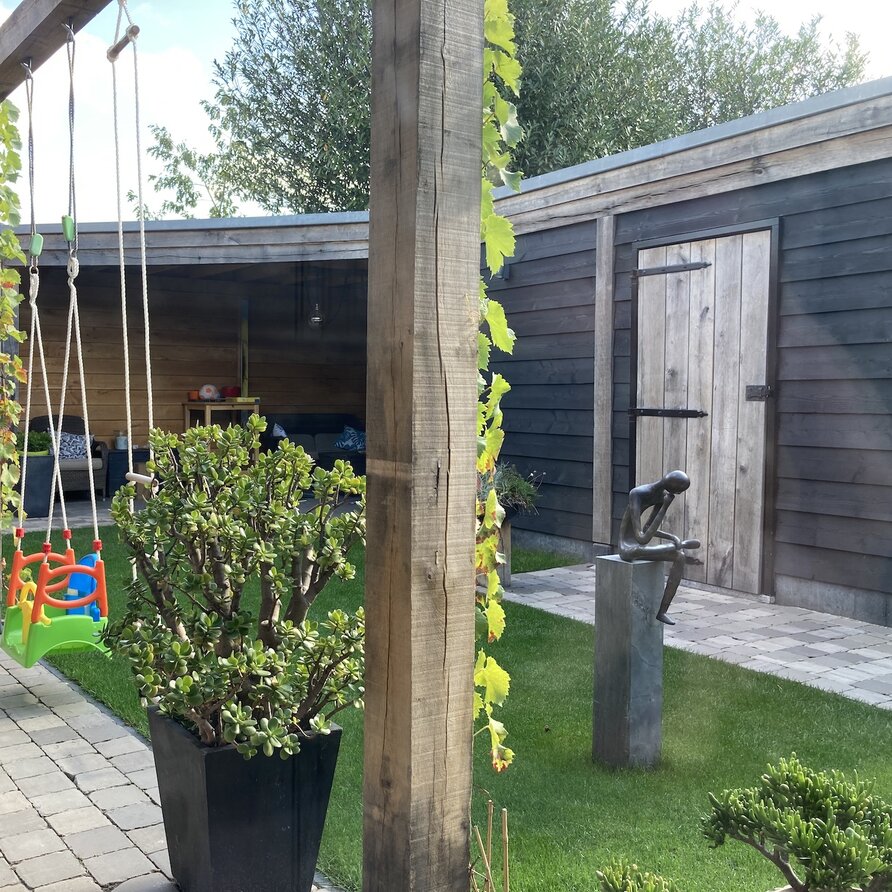 Een eerlijk verhaal - zwart vuren KD profielhout met ruwe zichtzijde voor buiten.